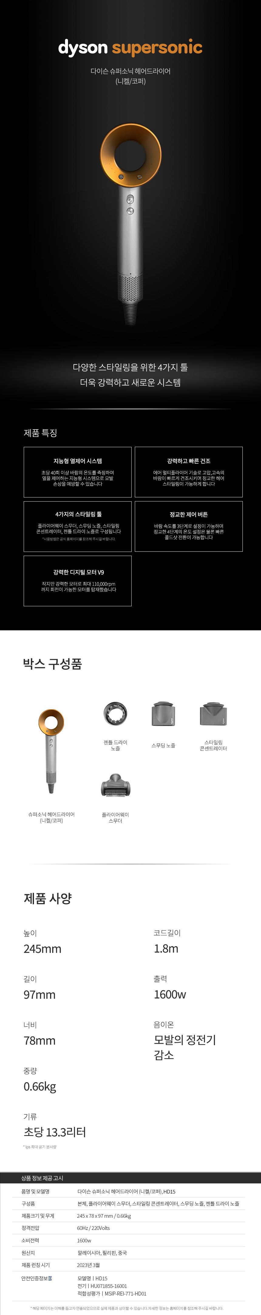 ★다이슨★ 슈퍼소닉 헤어드라이어(니켈/코퍼)
