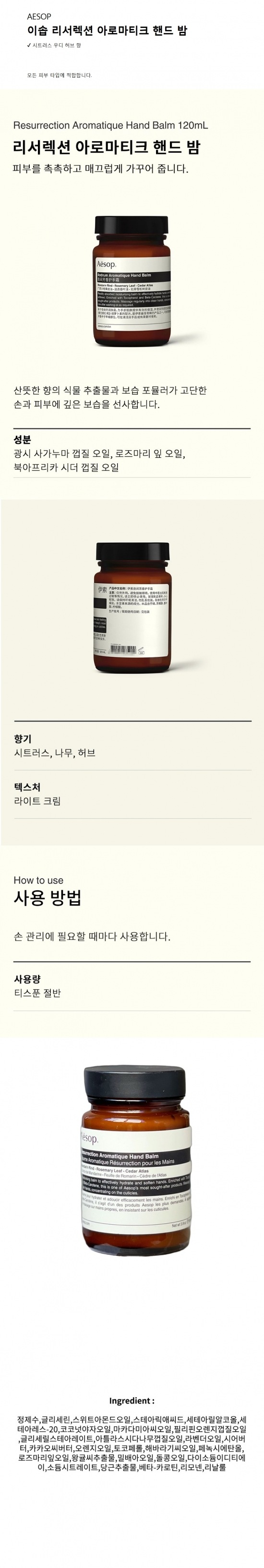 ★이솝★ 리서렉션 아로마티크 핸드 밤 120ml 1개