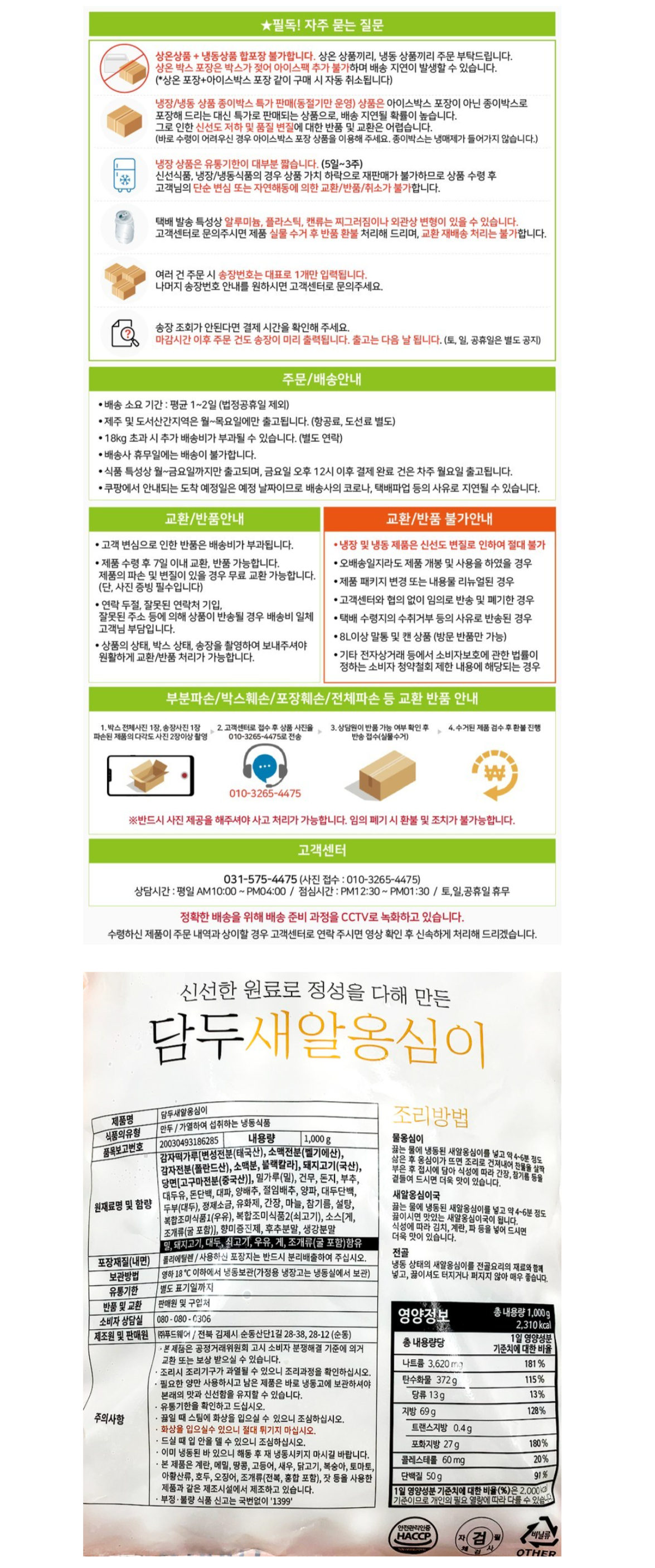 ★푸드마을★ 담두 새알 옹심이 1kg 만두 1개