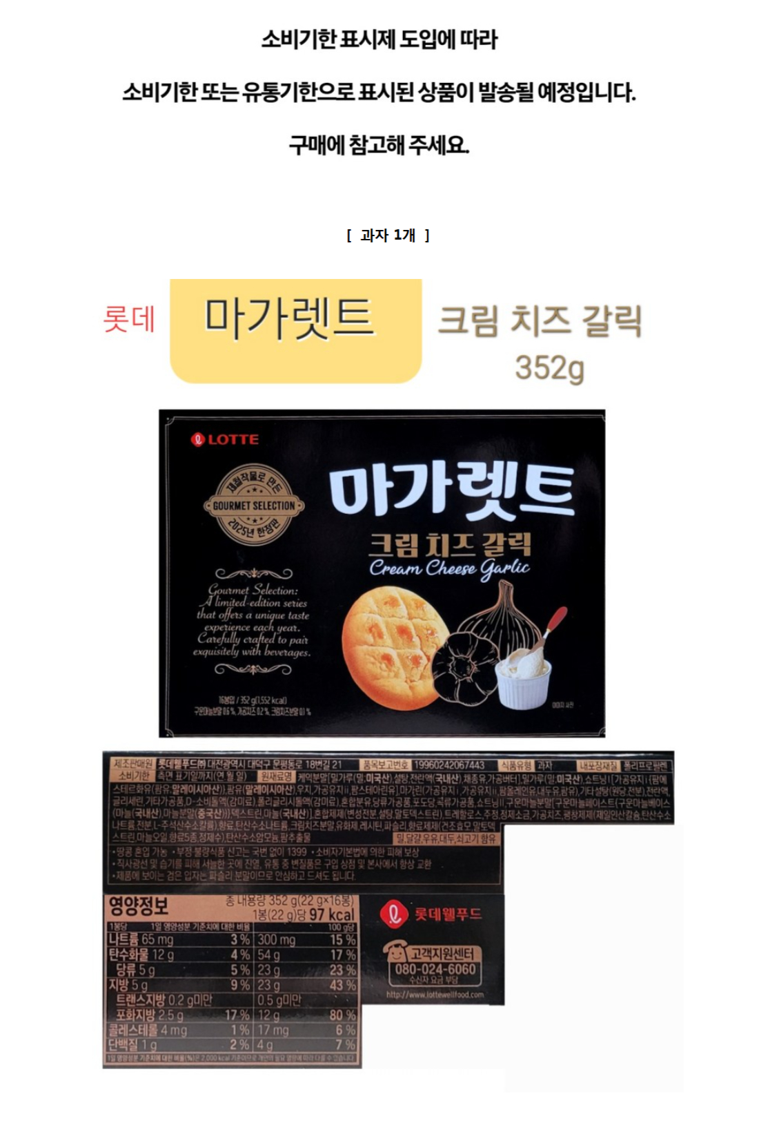 ★롯데★ 마가렛트 크림치즈갈릭 총352g