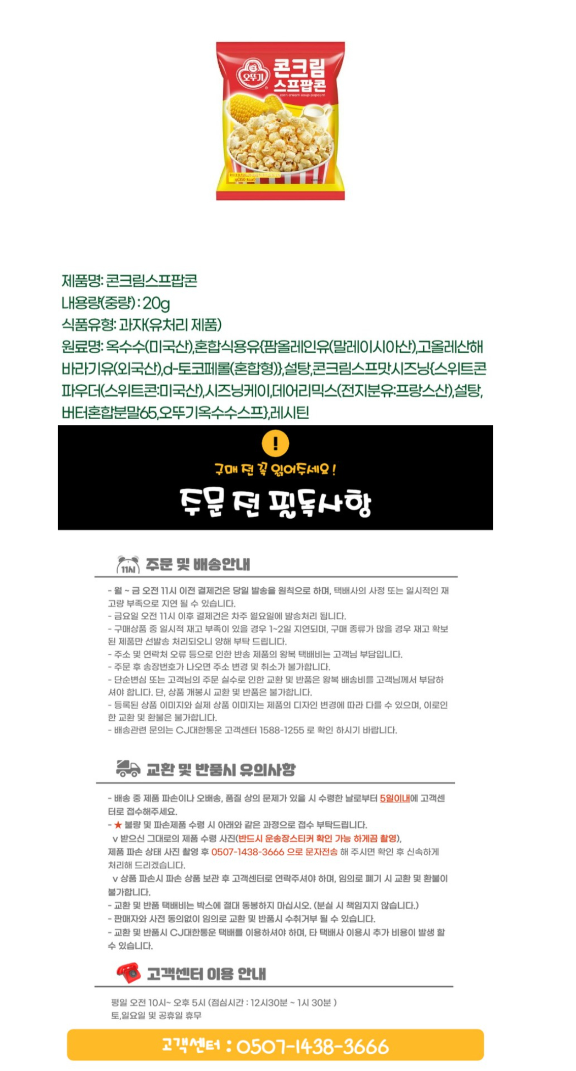 ★오뚜기★ 콘크림 스프 팝콘 20g, 5개