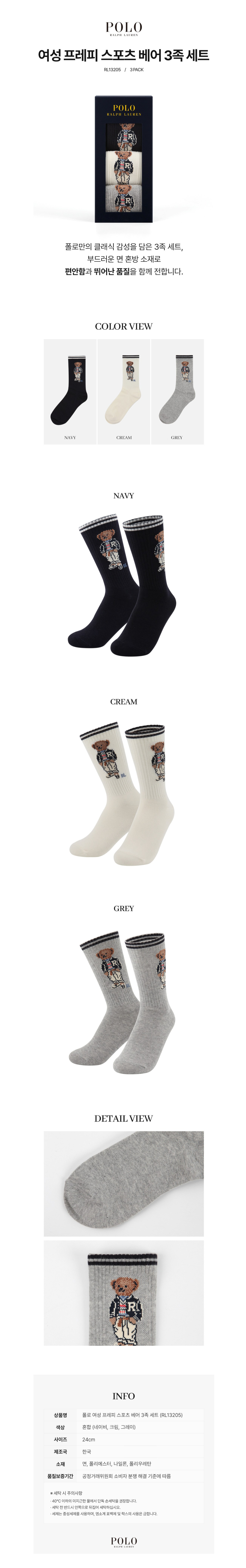 ★폴로랄프로렌★ 여성용 프레피스포츠베어 3켤레 선물세트