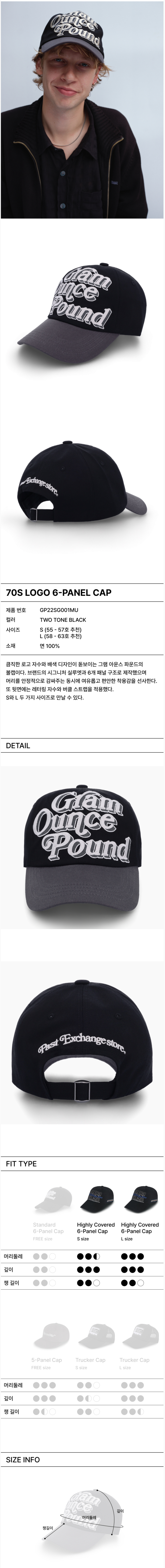 ★그램★ 아운스 파운드 70S LOGO 6-PANEL CAP Two Tone Black