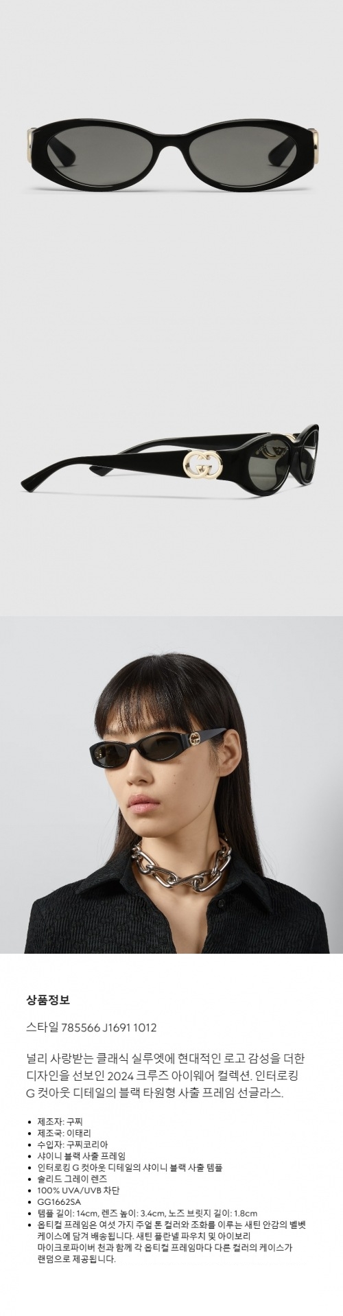 ★GUCCI★ 로우 노즈 브릿지 핏 선글라스 블랙