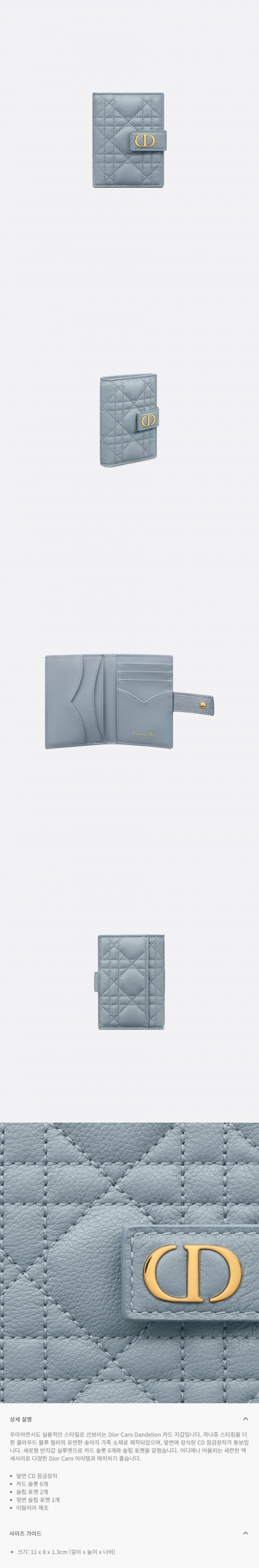 ★DIOR★ Caro Dandelion 카드 지갑 클라우드 블루 서플 까나쥬 송아지 가죽