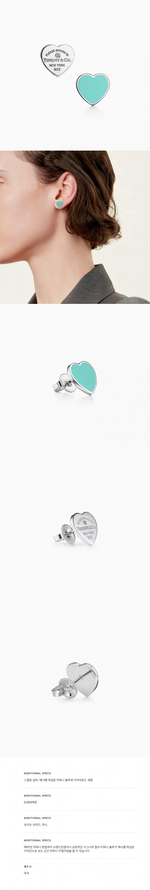 ★Tiffany & Co★실버에 티파니 블루 마감 및 다이아몬드 미니 이어링