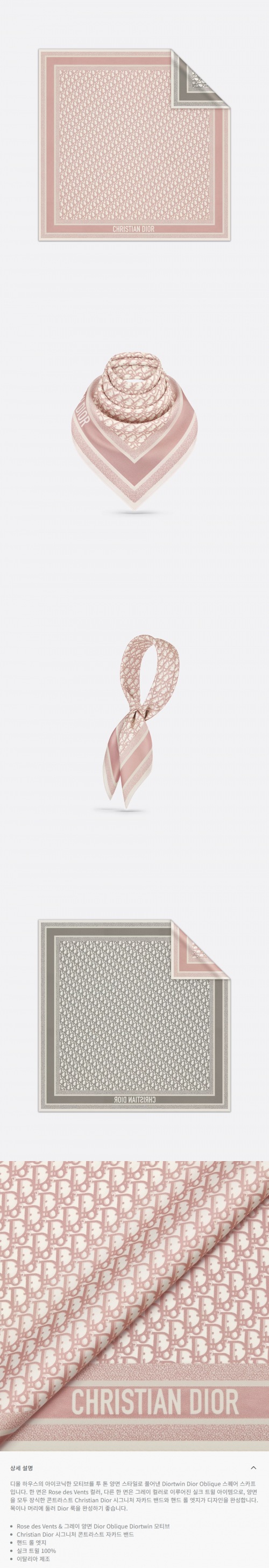★DIOR★ Diortwin Dior Oblique 90 스퀘어 스카프 Rose des Vents & 그레이 실크 트윌