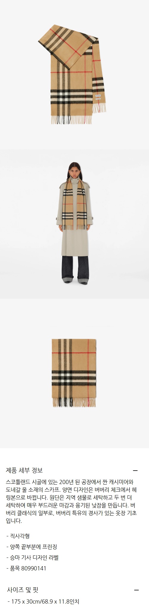 ★BURBERRY★ 체크 캐시미어 스카프 아카이브 베이지
