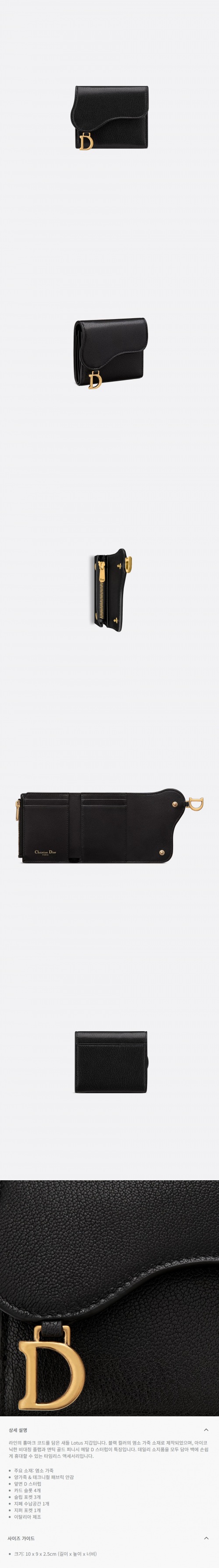 ★DIOR★ Saddle Lotus 지갑 블랙 염소 가죽